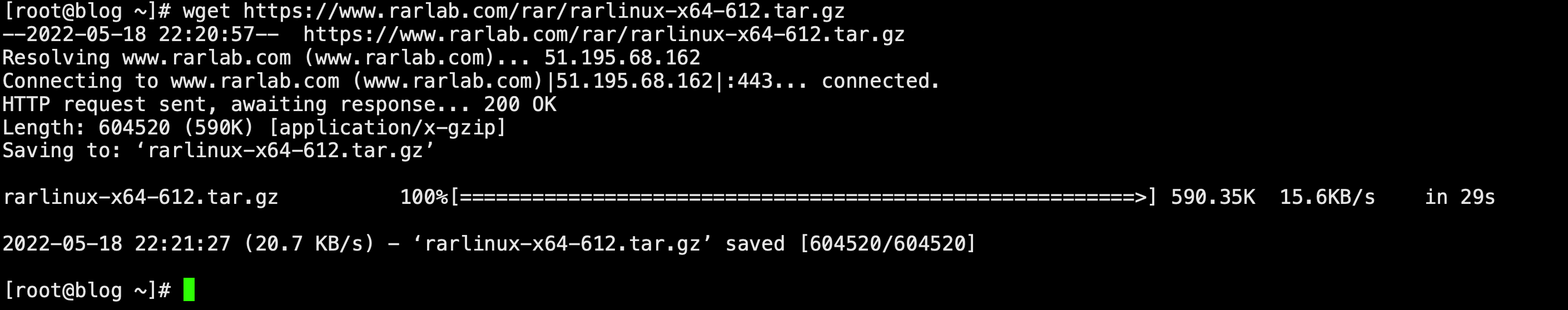 wget https://www.rarlab.com/rar/rarlinux-x64-612.tar.gz