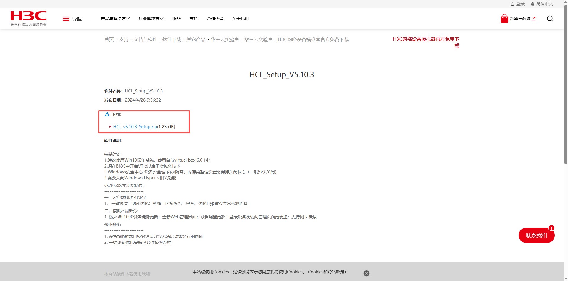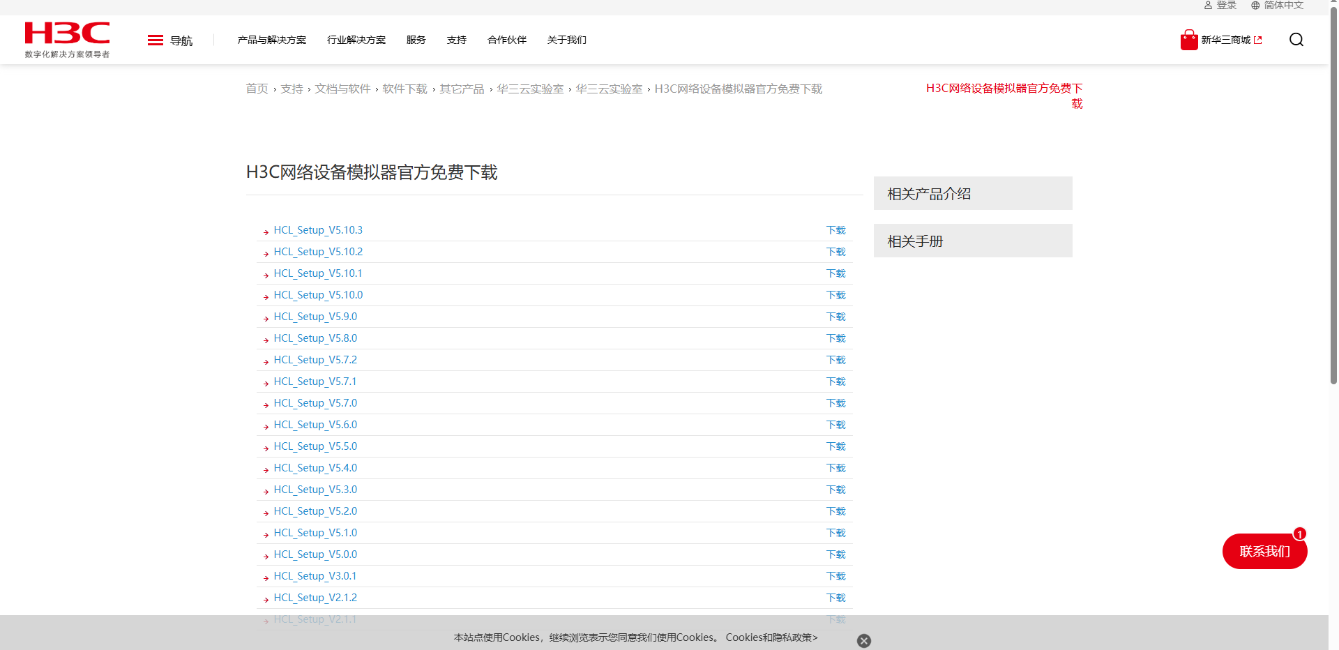 https://www.h3c.com/cn/Service/Document_Software/Software_Download/Other_Product/H3C_Cloud_Lab/Catalog/HCL/从下载列表中选择一个你喜欢的,点击下载。